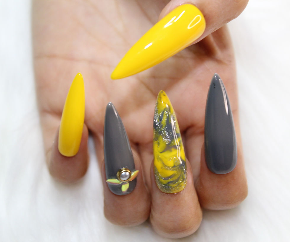 Ready to Buy - XXS Yellow & Grey with accent nail designs